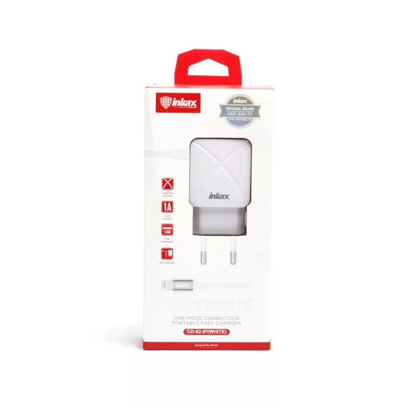 Inkax CD-52 Hálózati töltőfej Lightning kábellel. Kompakt utazóadapter . Kompatibilis a legtöbb piacon lévő készülékkel.