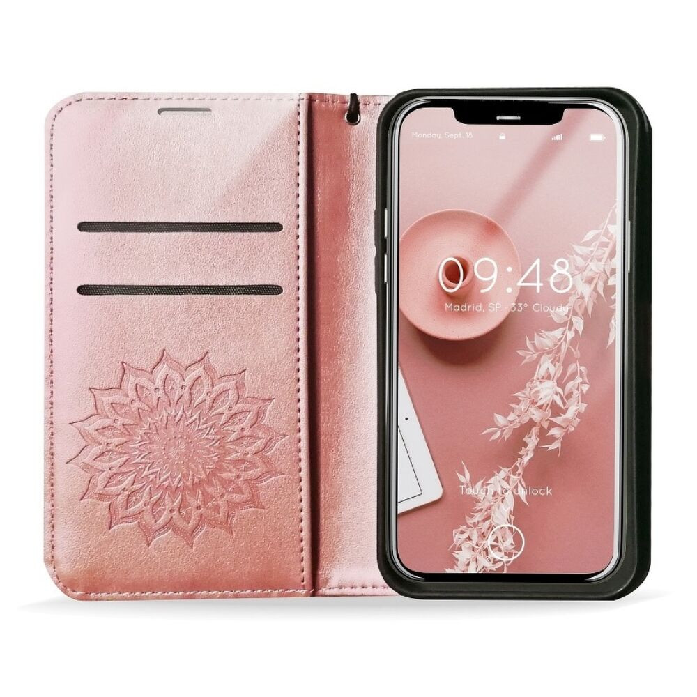 Mandala mintás könyv tok 2+1 zsebbel , elegáns kivitelben. Kiemelkedő szélei védik a készüléked a külső behatásoktól. Iratoknak,bankkártyáknak illetve készpénznek kialakított helyek , akár pénztárca helyett is